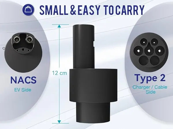 The Type 2 to Tesla (NACS) Adapter – 7 kW is a practical and reliable solution for charging Tesla vehicles from standard Type 2 AC charging stations. This adapter allows seamless compatibility between Type 2 EV chargers and Tesla cars equipped with the NACS port, making it ideal for home, workplace, and public charging environments.